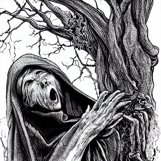 Méadhbh setzte sich an der Hügelkuppe am Lough Inagh nieder und betrachtete den See. Sie fühlte jemanden neben sich stehen und wusste, dass es die Banshee war, die nun für sie gekommen war. Dieses Mal schrie die Kreatur nicht, sondern stille Tränen rannen ihr Gesicht hinunter. Es gab niemanden mehr, der um Méadhbh trauern würde, also musste sie auch nicht gehört werden. Méadhbh hob den Kopf und erwiderte still den Blick der Kreatur. Für einen Moment glaubte sie, einen Ansatz von Freude in dem von Trauer zerfurchten Gesicht zu erkennen. Sie ließ den Zweig aus ihrer Hand gleiten und spürte die Last der Jahrhunderte über sie hereinbrechen, bevor der Wind durch ihre Fasern drang und sie als Staub auf den See hinaustrug.