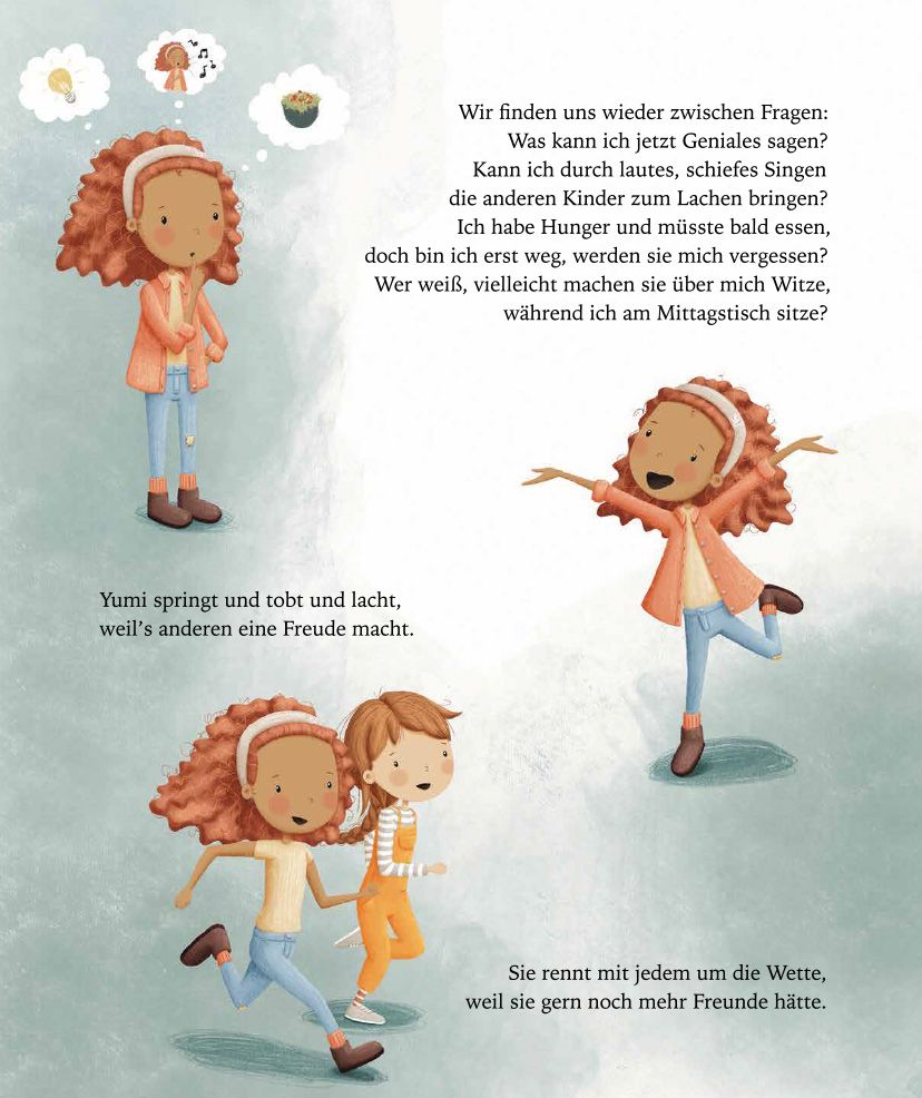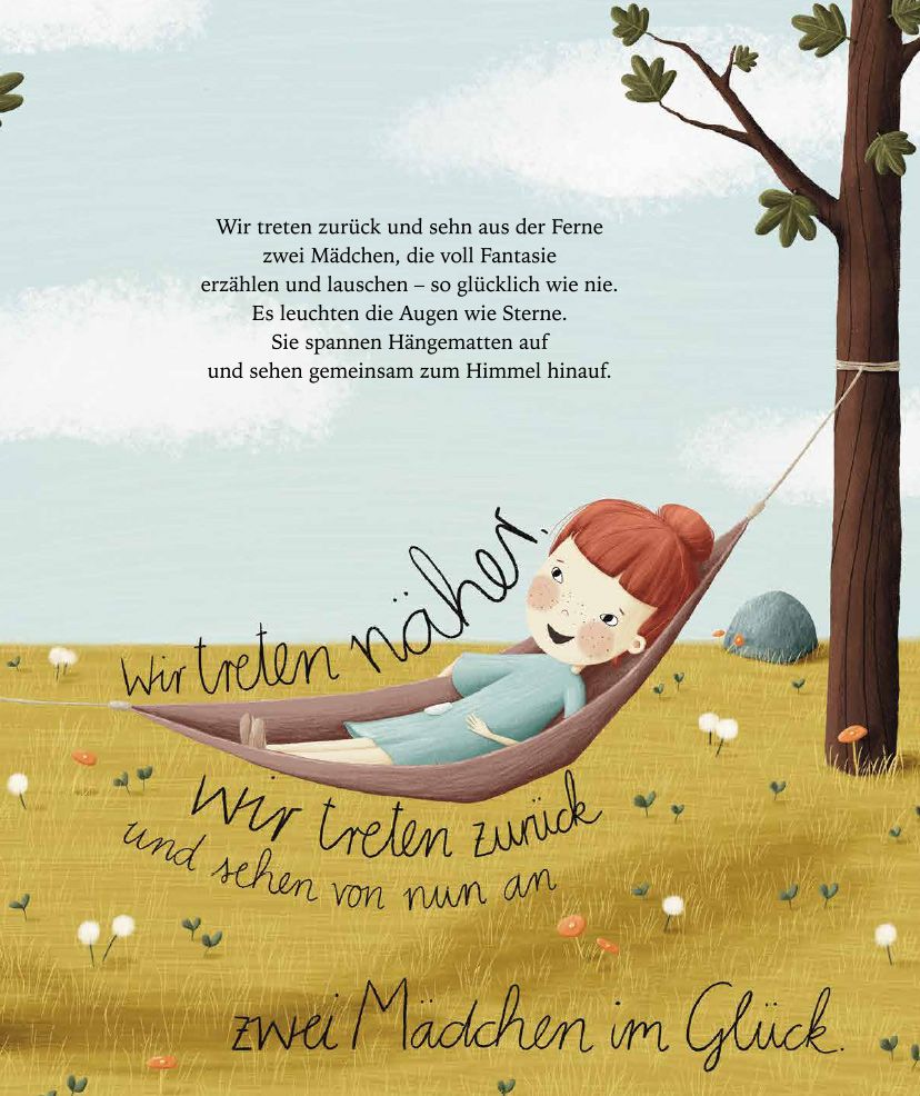 Im Winter 2021 erschien mit Zwei Mädchen im Glück das zweite Buch aus der Kinderbuch-Reihe „Wunderbare Wesen“. Mit jedem neuen Buch stellt die Reihe nicht nur ein anderes Kind oder Freunde-Paar in den Fokus, sondern auch ein anders Thema. Während es in Das wunderbarste Wesen der Welt um Freundschaft, Mut und – nun ja, wunderbare Wesen dieser Welt ging, wagt Zwei Mädchen im Glück auf ganz besondere, stille Weise einen Blick hinter die Fassade zweier Kinder, die nach außen hin ganz anders wirken, als sie innen sind. Zu sich zu stehen ist eine wichtige, aber oft nicht einfache Lektion, sowohl für Kinder als auch für Erwachsene. Yumi und Smilla schaffen es, in dem sie zueinander finden.